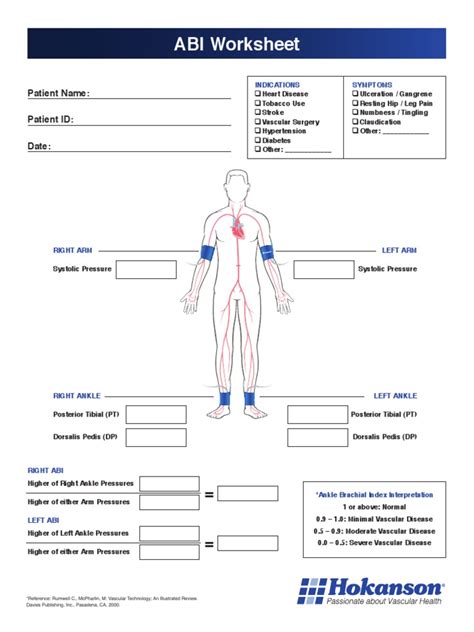 An ABI calculation worksheet is an important tool for doctors to use when diagnosing peripheral artery disease. It is relatively simple to use and provides accurate results when used correctly. By taking the time to ensure that the patient is relaxed and comfortable, you can help ensure accurate results.